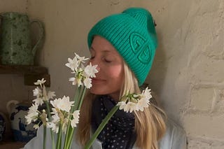 A warm, woolly hat is an essential for me in winter and to keep me warm while flowering in the elements (and my outdoor studio!).