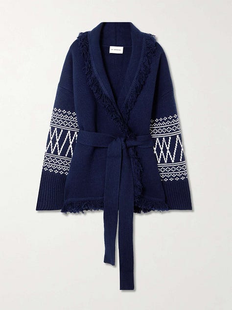 WE NORWEGIANS Setesdal belted fringed intarsia-knit merino wool and cashmere-blend cardigan