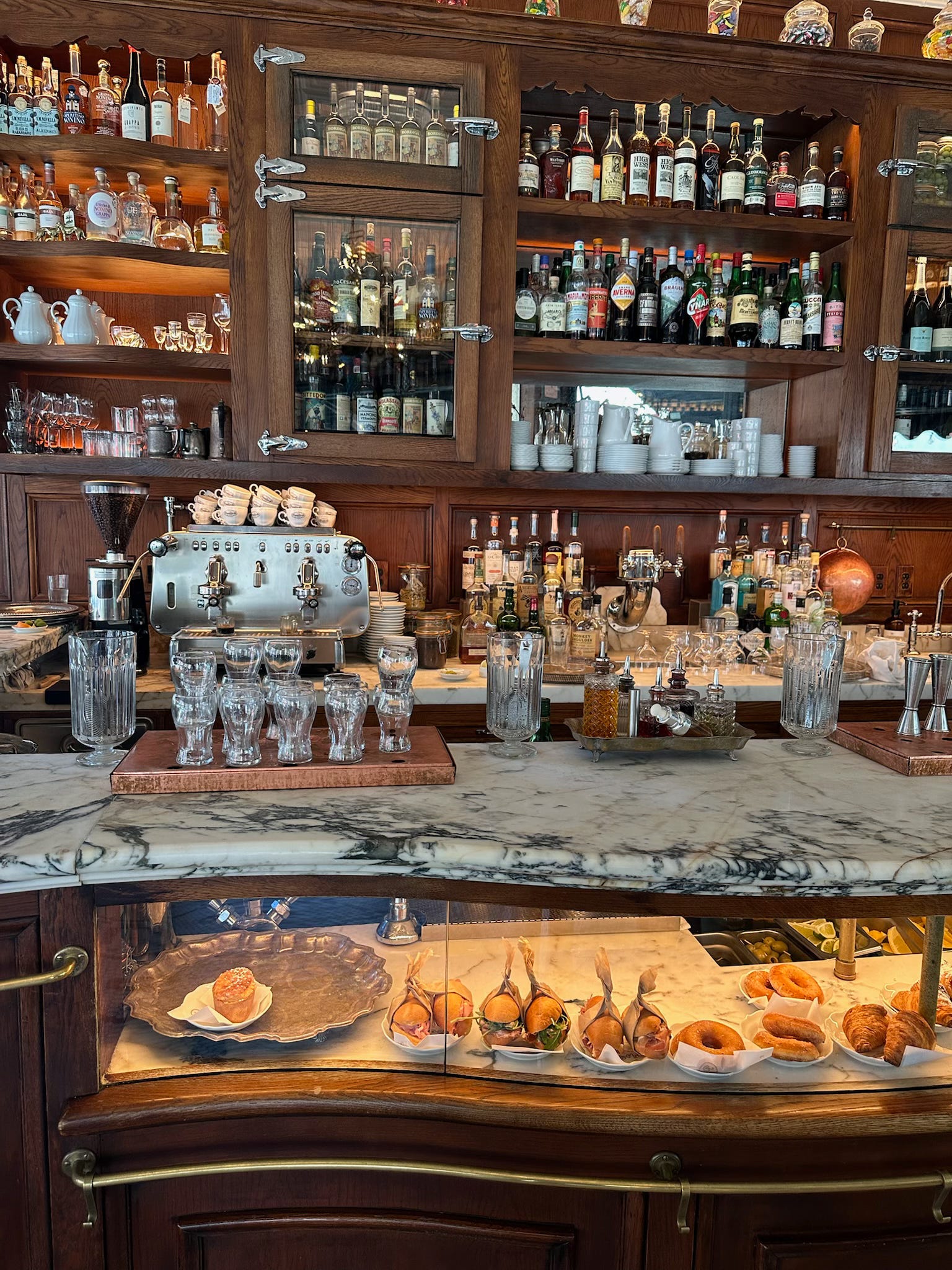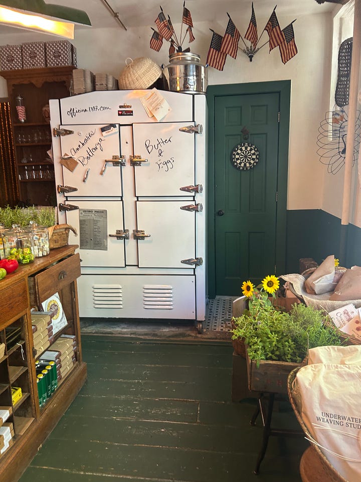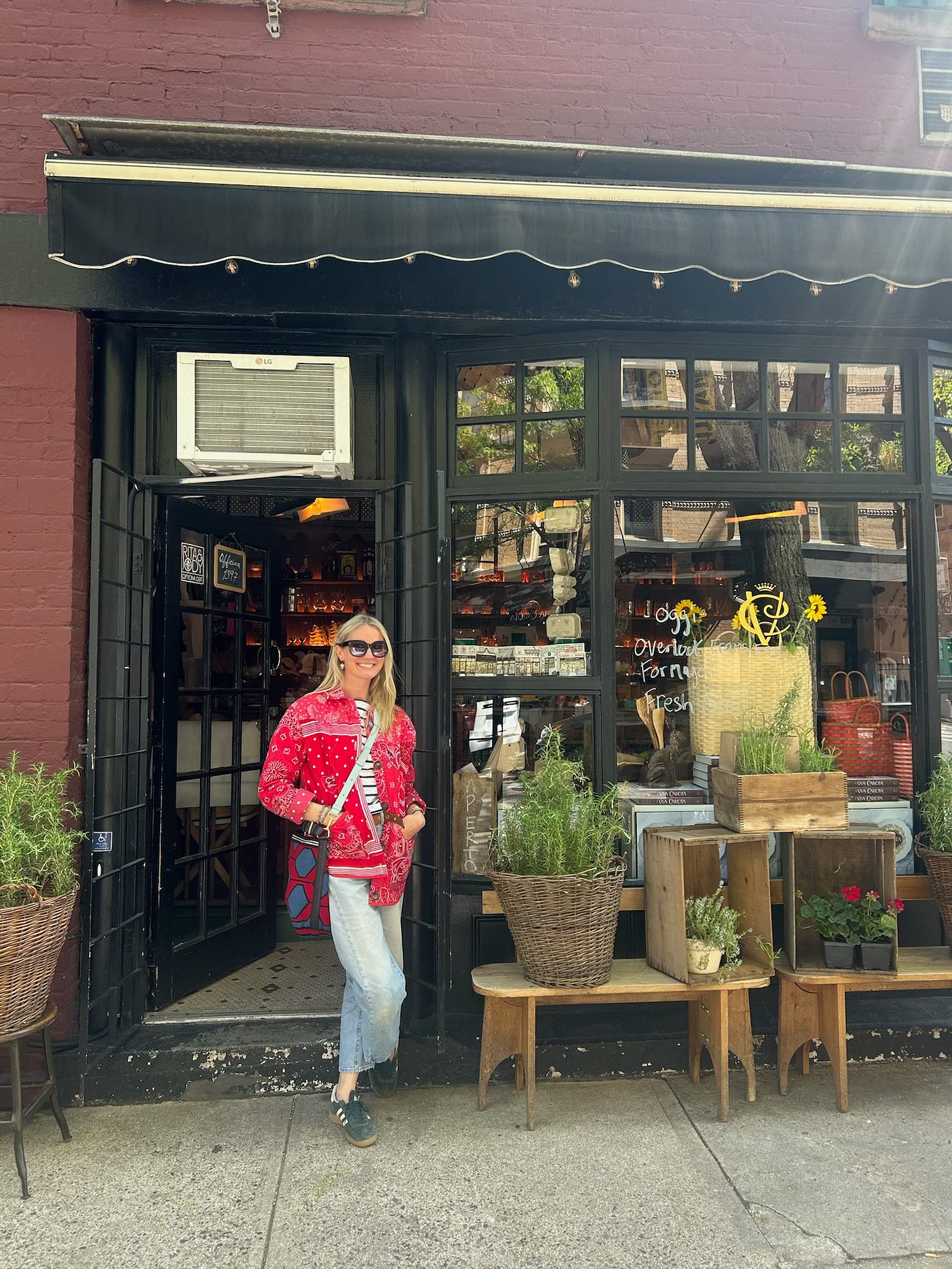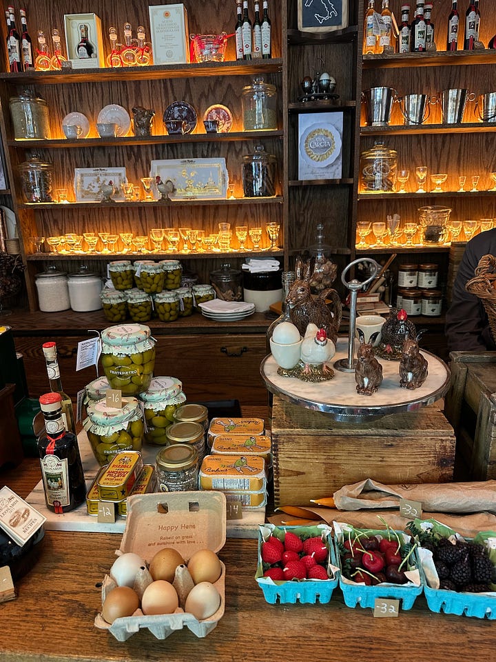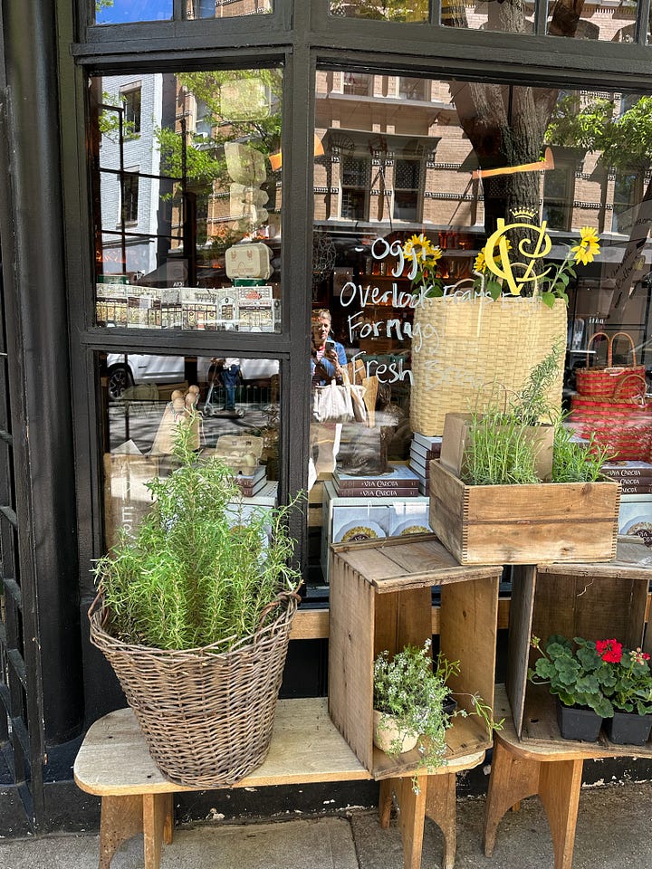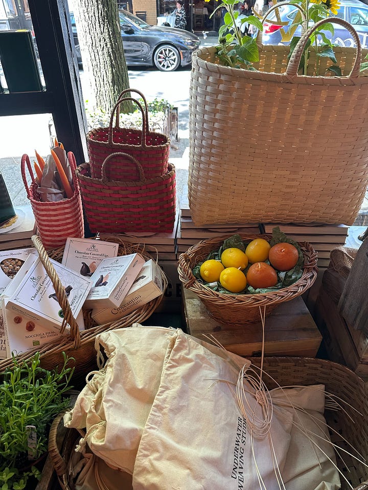 We tried to get a walk-in for late lunch at Via Carota in the West Village which is on the very pretty buzzy Grove Street with Bar Pisellino (also part of the group) on the corner. There is also the most charming little boutique deli pop-up ‘Spazio Creativo’ opposite the restaurant selling baskets (which of course drew me in) and other wonderful wares including tiny cherry-shaped candles amongst other chic oddities.