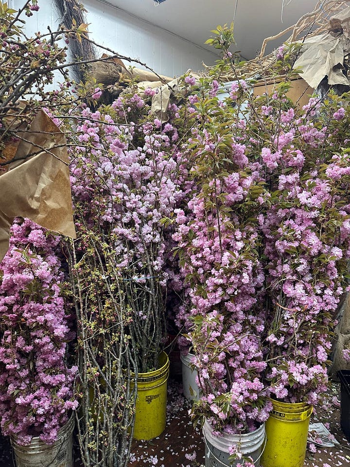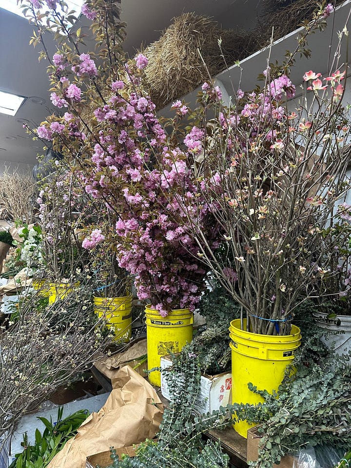 We were told it was the best week flower-wise in the city, and it was, we were so lucky, it was incredible! From the blossom and dogwood in Central Park to the flower market bursting with spring blossom and blooms. Although expensive like everything in New York, the foliage was large scale and abundant - blossom ten feet tall and peonies as large as dinner plates that had just come in that week.