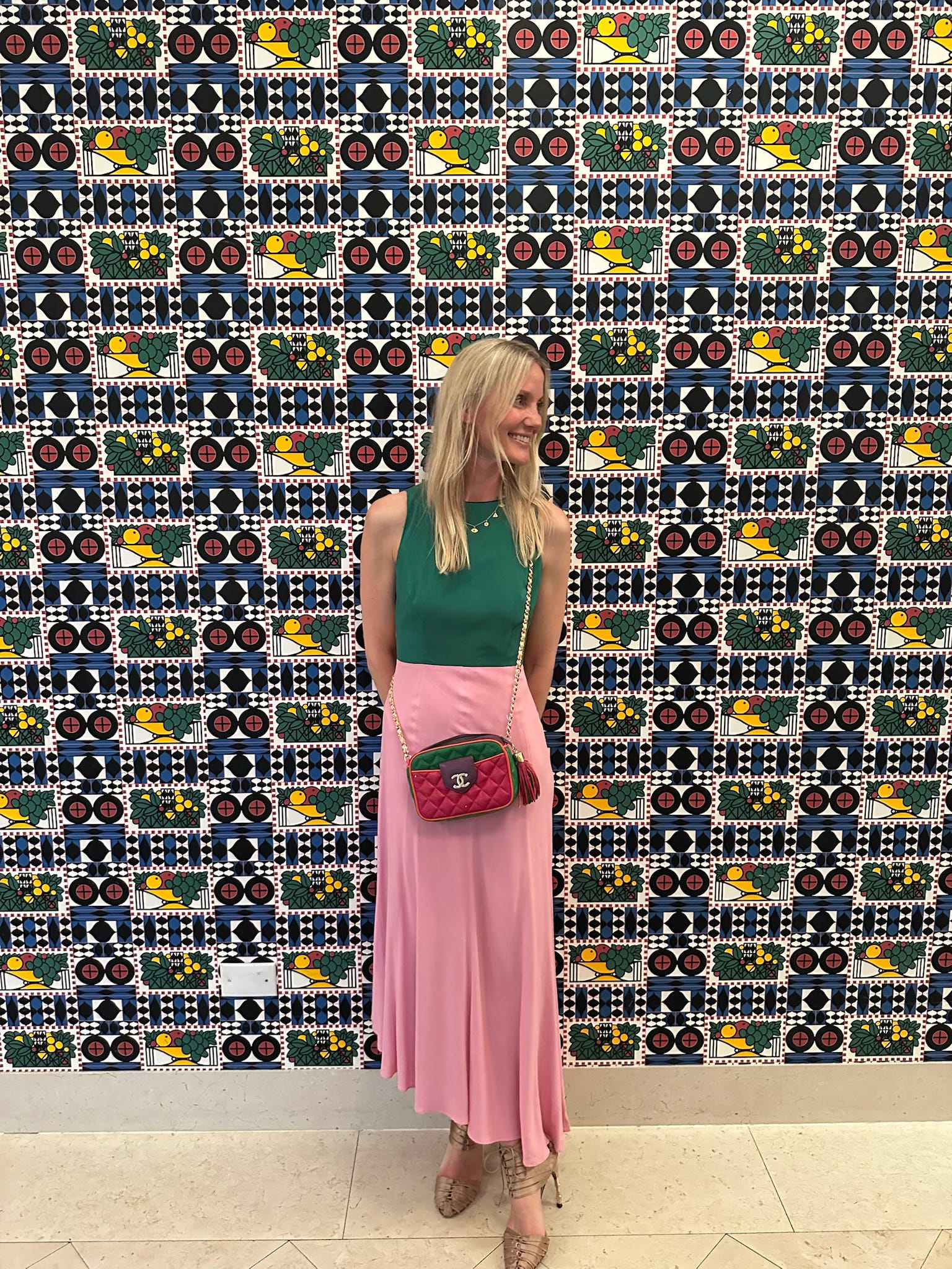 And for the main event, a favourite La Double J colour block dress, Gucci heels and bag…
