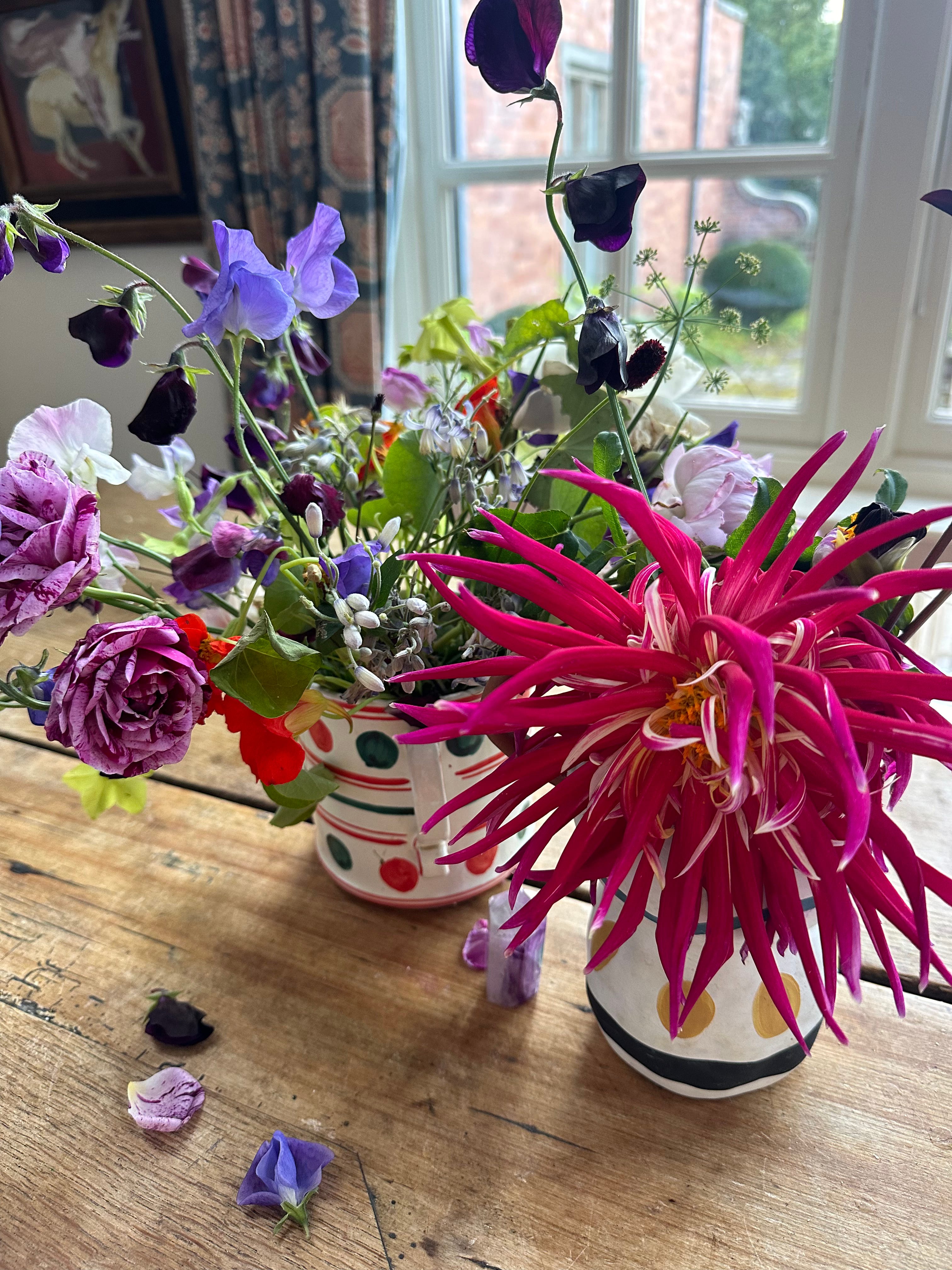 So without further ado, I am wishing you a very, very happy end-of-summer-bank-holiday bonanza! Take some time for you in the sunshine if you can… if you have time to be in the garden, now is the time for cutting back your lavender, deadheading your annuals and collecting seeds. And if you have time to play with flowers, I’m still enjoying my new found love of a dahlia/ zinnia/cosmos combo.
