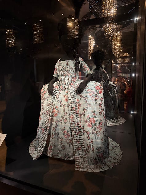 On Monday I took a day for me (this is harder than it sounds but I highly recommend it!) and met some of my besties for a day in London. I’ve been wanting to go the Marie Antoinette exhibition at the V&A since it opened earlier this year and this was the day. I loved it; I’ve been fascianted by her since watching Sofia Coppola’s film in 2006 and adored discovering more about her. The dresses, the decadence, the hand embroidered bows and beads, the tiny bejewelled shoes, the ruffles, the leopard print! (I had naively not expected there would be leopard print in that time!). Pure escapsim, pure romance, all the floucnes and frills you would expect but in the most beautiful, skillful, detailed, inspiring forms. Her jewellery literally took my breath away and as for the gardening tools - The minute the rain stops I’m off to decorate my spade with ribbons too!