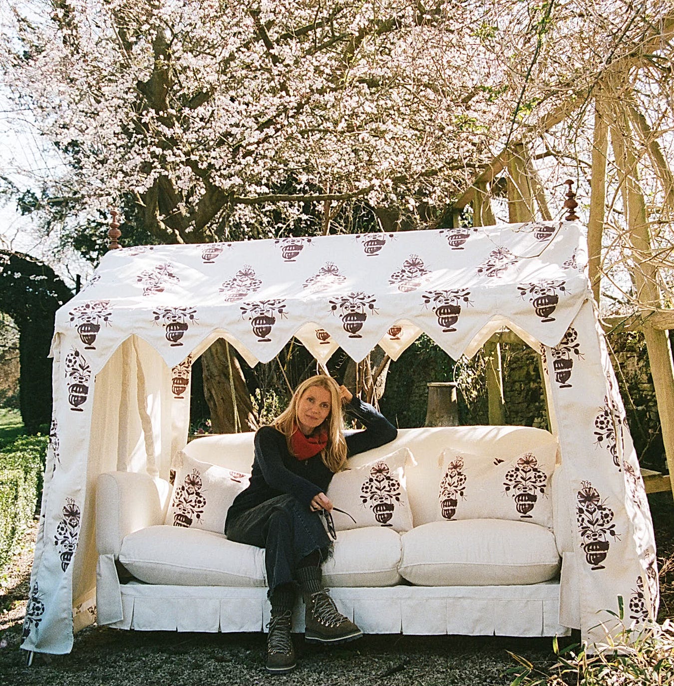Is there anything more heavenly to have in a country (or any) garden than a canopied swing rocker for two (or three!)?! I think they might be the most quintessentially English version of the American porch swing and I’ve long been obsessed. I’ve recently had my beloved rocker recovered in beautiful Emma Grant fabric for ODD.