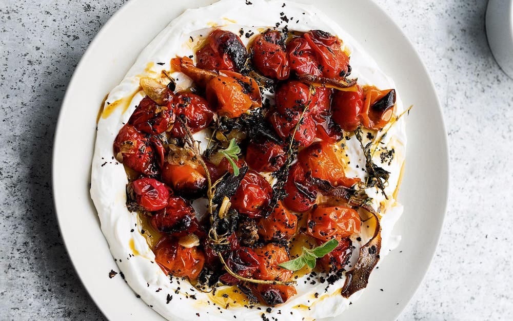 Hot Charred Cherry Tomatoes with Cold Yoghurt