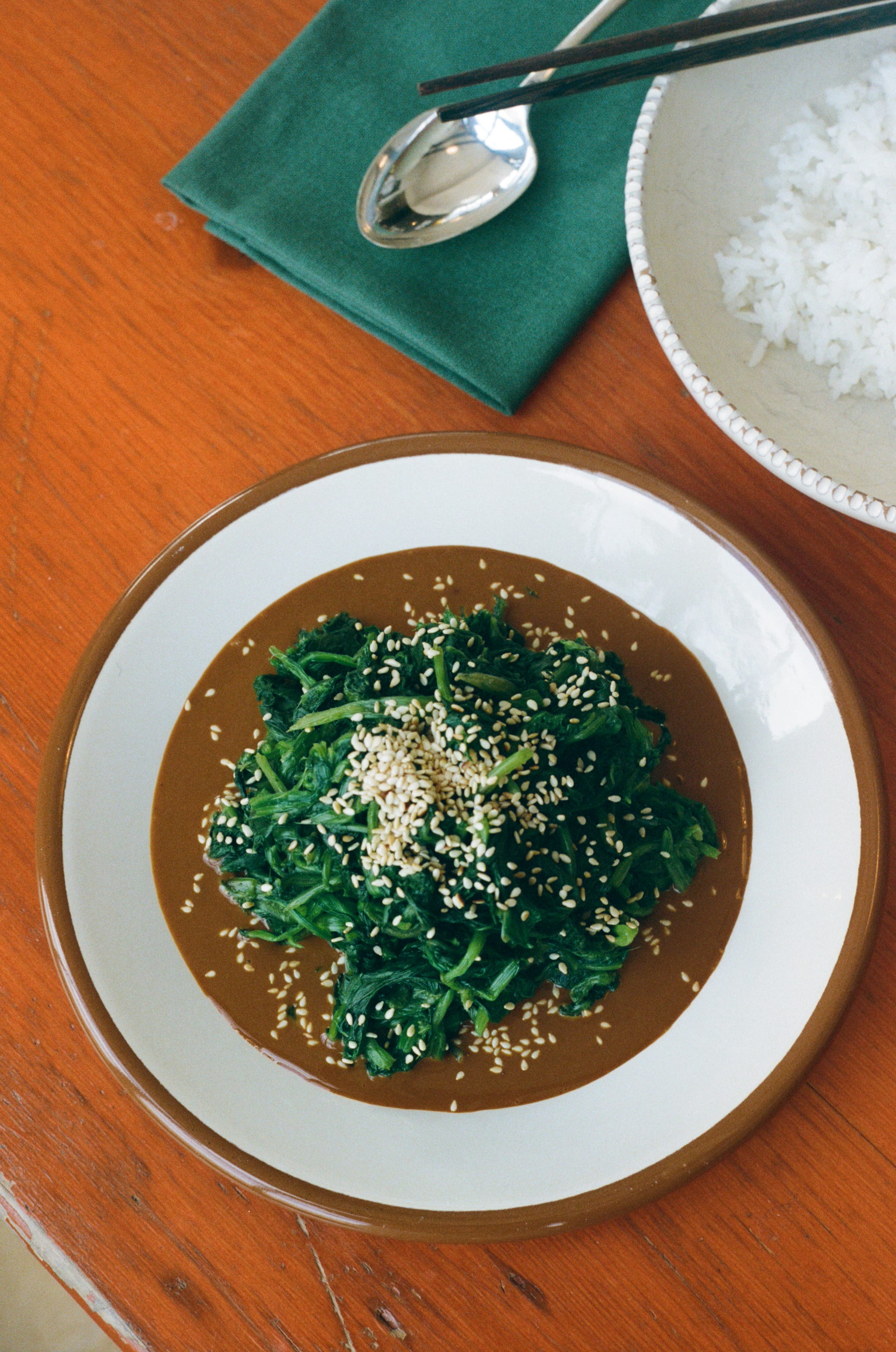 “This is my favourite way to eat spinach, without a doubt, and I crave it all year round. If you can’t find Chinese sesame paste, tahini will work fine, but if you do have a good Asian supermarket nearby, I encourage you to go there! They have the best selections of chilli oils (Lao Gan Ma for life), kimchi and bulk spices – and this sesame paste alone …