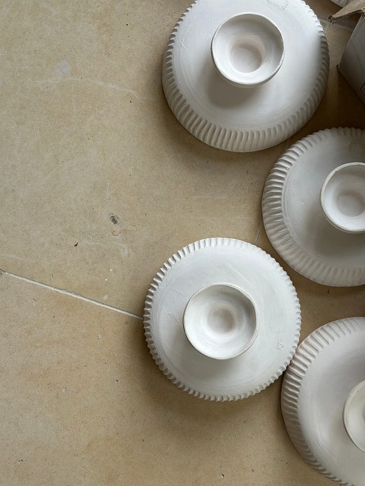 We are very excited to announce our special collaboration with talented British ceramicist, Kate Trelawny this weekend - two beautiful stoneware footed bowl vases that have been hand thrown on the wheel in Kate’s London studio and delicately decorated by hand. I have keenly followed Kate’s work and her story of cook for the fashion crowd turned ceramicist with a cult following. Here we we spent 5 minutes with Kate to find out more about her passion pivot into the world of ceramics…