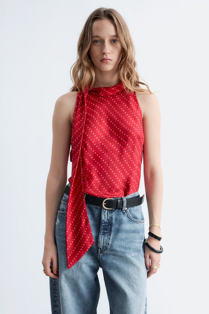 Red Scarf Silk Top