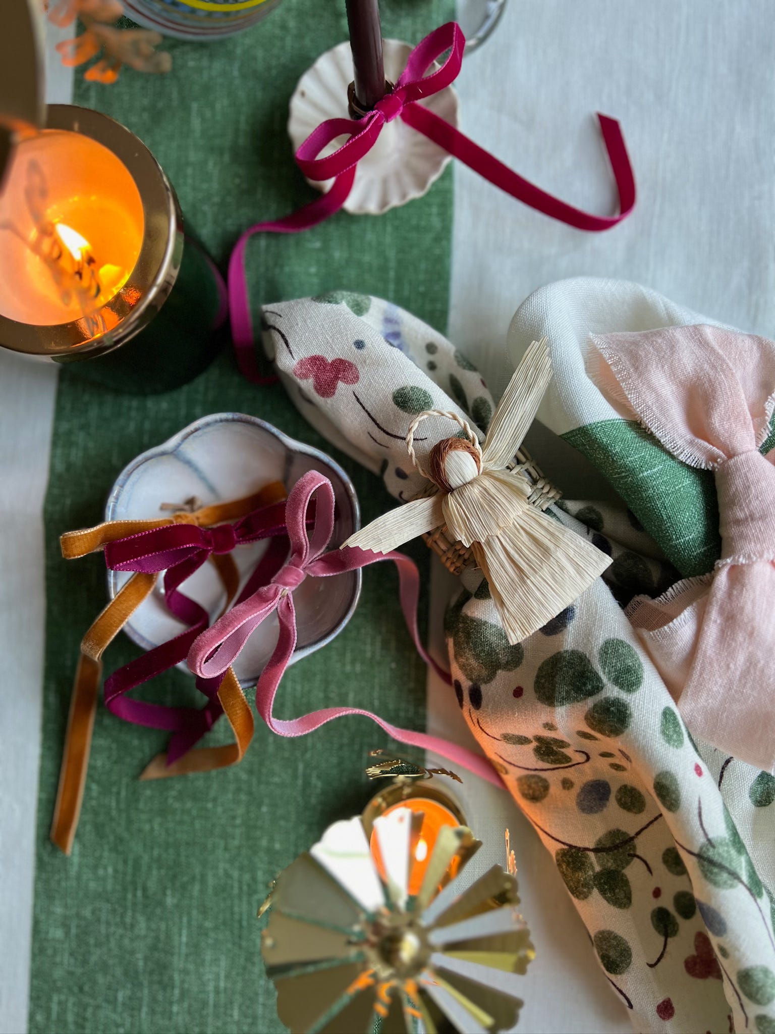 It's simply not Christmas without crackers and I can never go past a stripe, and I love that you can fill these with your own little treasures and bad jokes… Once the table is set, I can't help but layer some other festive decorations and this year I'll be adding our gorgeous corn husk angel decorations to each table setting.