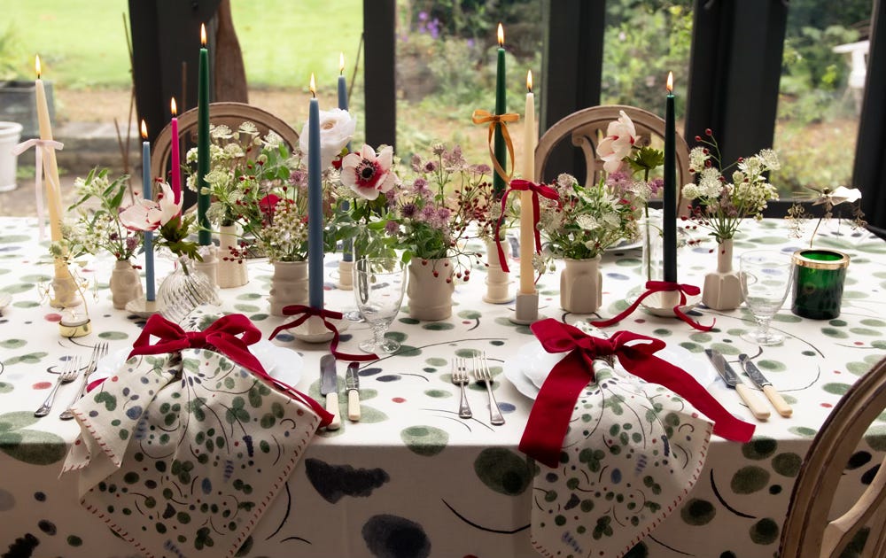 Our beautiful new season posie pattern with matching napkins, is the most wonderfully airy, colourful and spirit-lifting base from which to build your tablescape. I also love to mix the green & white striped and botanical linens to mix things up - layering print with stripes is one of my favourite ways to decorate at home.