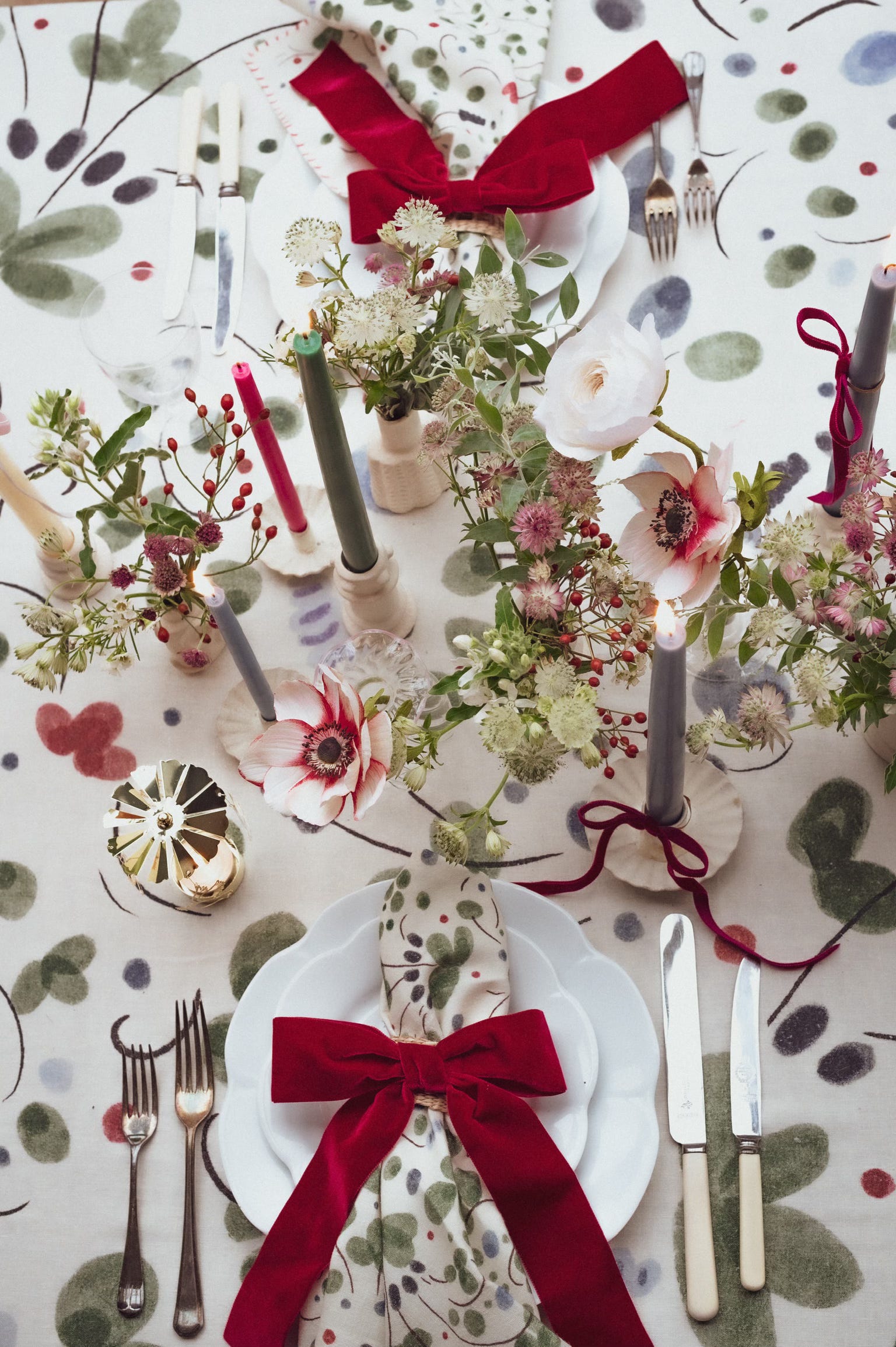 Our bow bar was designed mainly to use with our napkin ring holders for a very special place setting. This Christmas we've gone for red velvet bows and vintage embroidered bows. Mix them up for maximum effect and watch your guests feel utterly spoiled (and inspired to wear on their pony tails or as bow ties!). I love them tied to the back of our dining room chairs too for real bow overload…