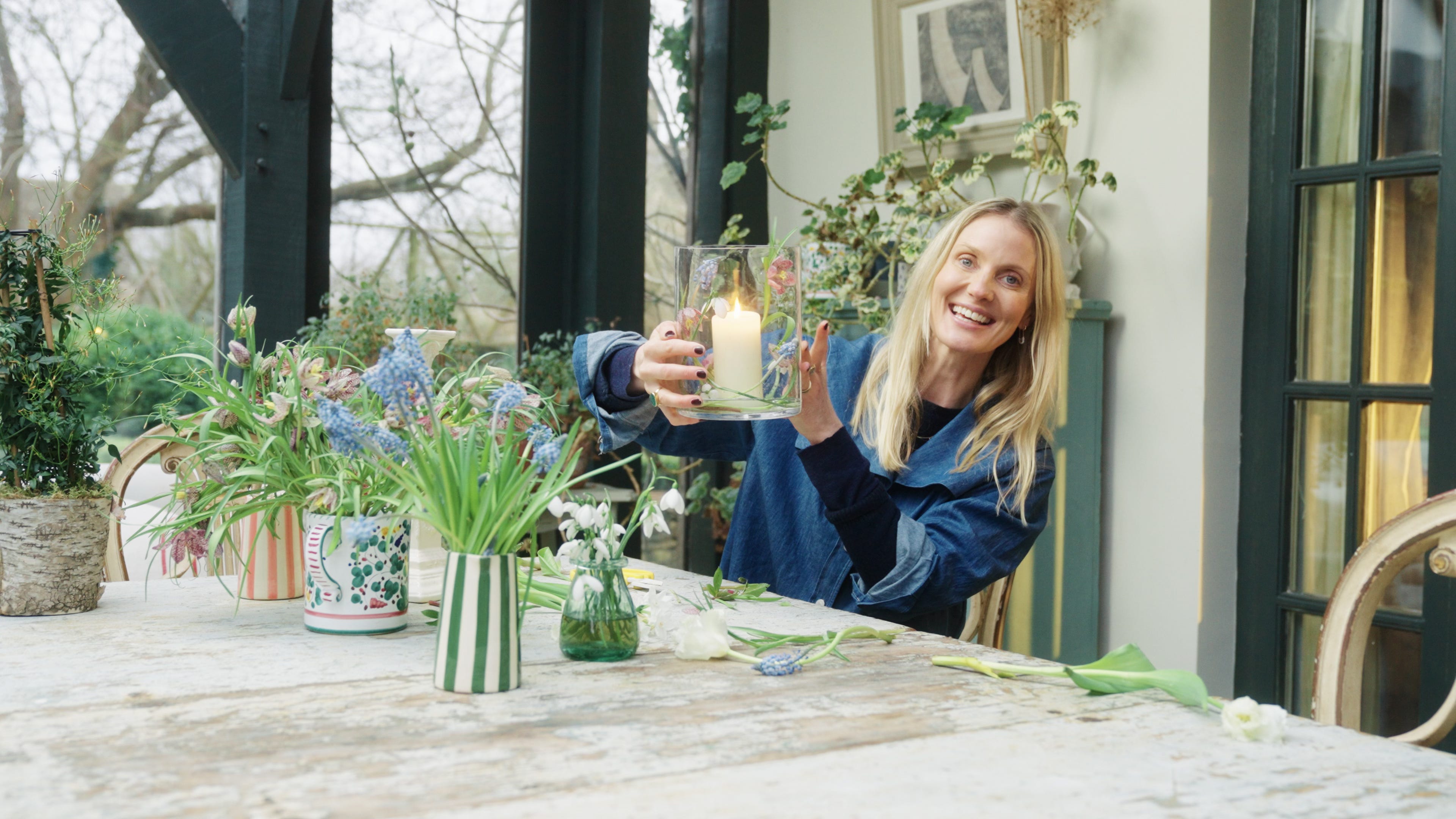 Now’s the time to recreate my magical ‘garden in a glass’! It’s one of my favourite flowery tricks for a spring centrepiece. The combination of fine pretty flowers with the glow of candle through glass is simply magical. Create for your next dinner party or ‘just because’ and prepare to impress, even if just yourself as it’s so easy!