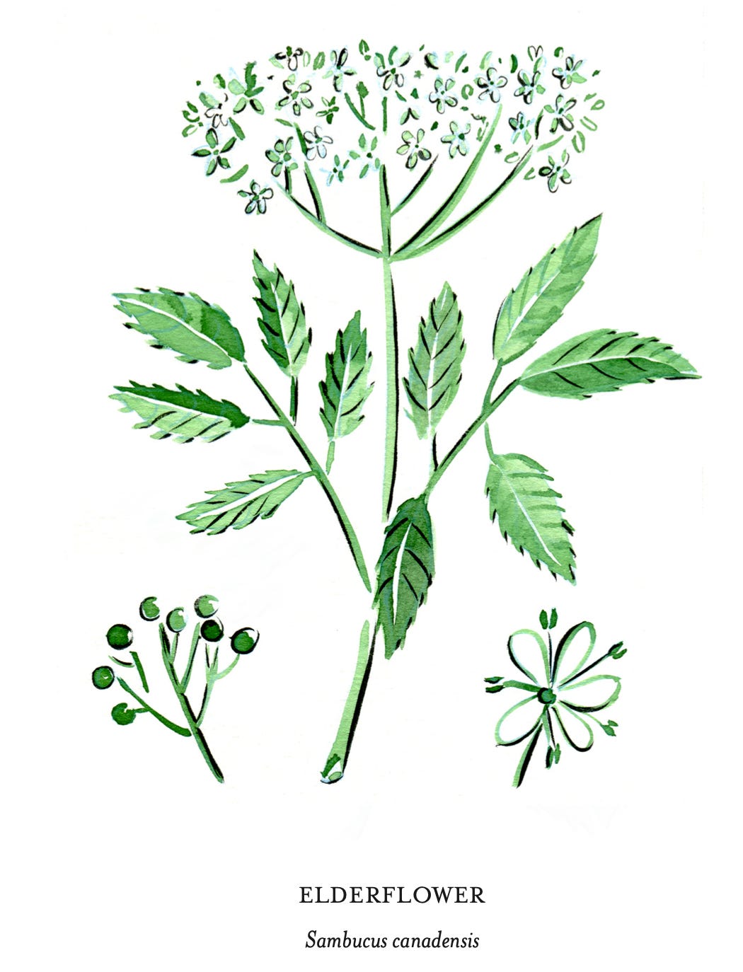 Recipe for about 1 litre of Elderflower cordial, Taken from my book The Wild Journal. Illustration by Nina Fuga