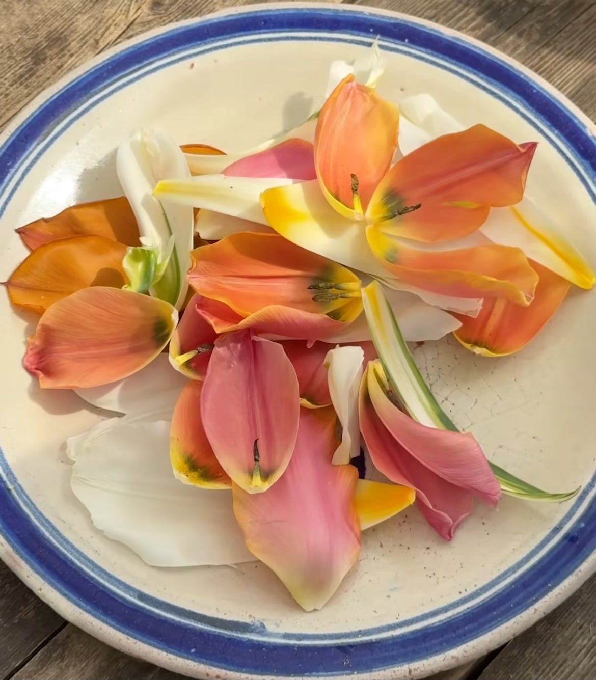 Tulip petals are edible! We’ve been inspired and reminded of this by a post on Sarah Raven’s instagram here, so before we get to the end of the season, why not add tulip petals to salads and on top of cakes, for some pretty entertaining…