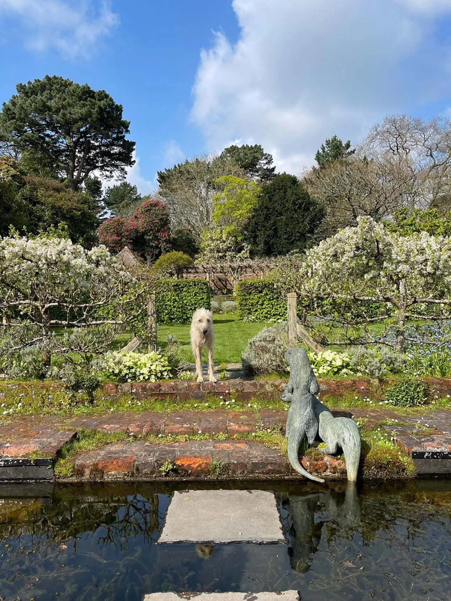 Paulownia, the Foxglove Tree, Camellia Isadora, named after our daughter! In the garden, we have over 200 species of Camellia, Rhodedendron, Magnolia and Myrtle with wild garlic, Lily of the Valley and moss underfoot. In the Walled Garden, Geum, Dicentra, Tulips, Primroses and Poppies. In the Water Garden there is a carpet of Bluebells, a Paper Handkerchief Tree dangling over the stream whose banks are pink with Primula Candelabra.