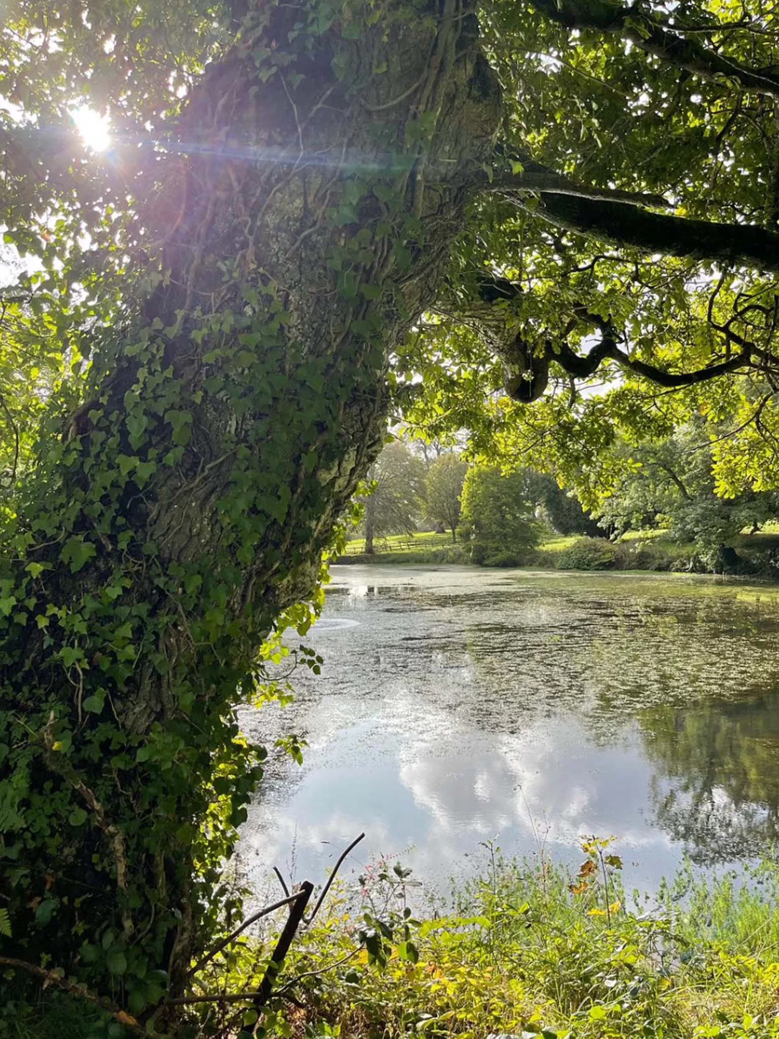 I'm obsessed with the light so my favourite part of the garden changes through the day. In the morning I love looking out over the parkland trees in the east, watching the first sun casting a spotlight onto the house and garden. Later in the day there's a hot spot on a bench in the walled garden where jasmine grows up the wall which is heaven. We've often stood on the South East corner of the garden where you can watch the moon rise through our Henheadhow sculpture, made by our friend, James Wild, from old estate railing we collected. It means Generation in Cornish and its wooden board has the words 'Salvaged from the past, to ground us in the present, with hope for the future'.